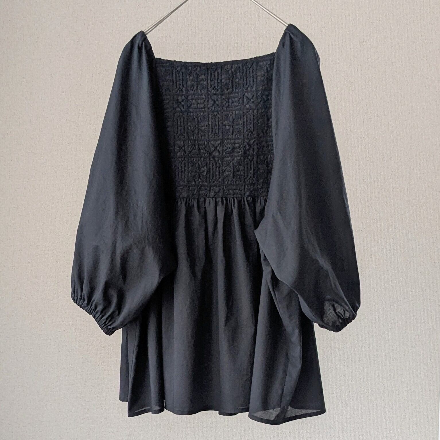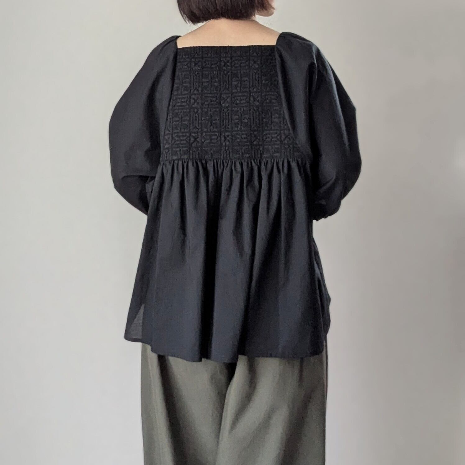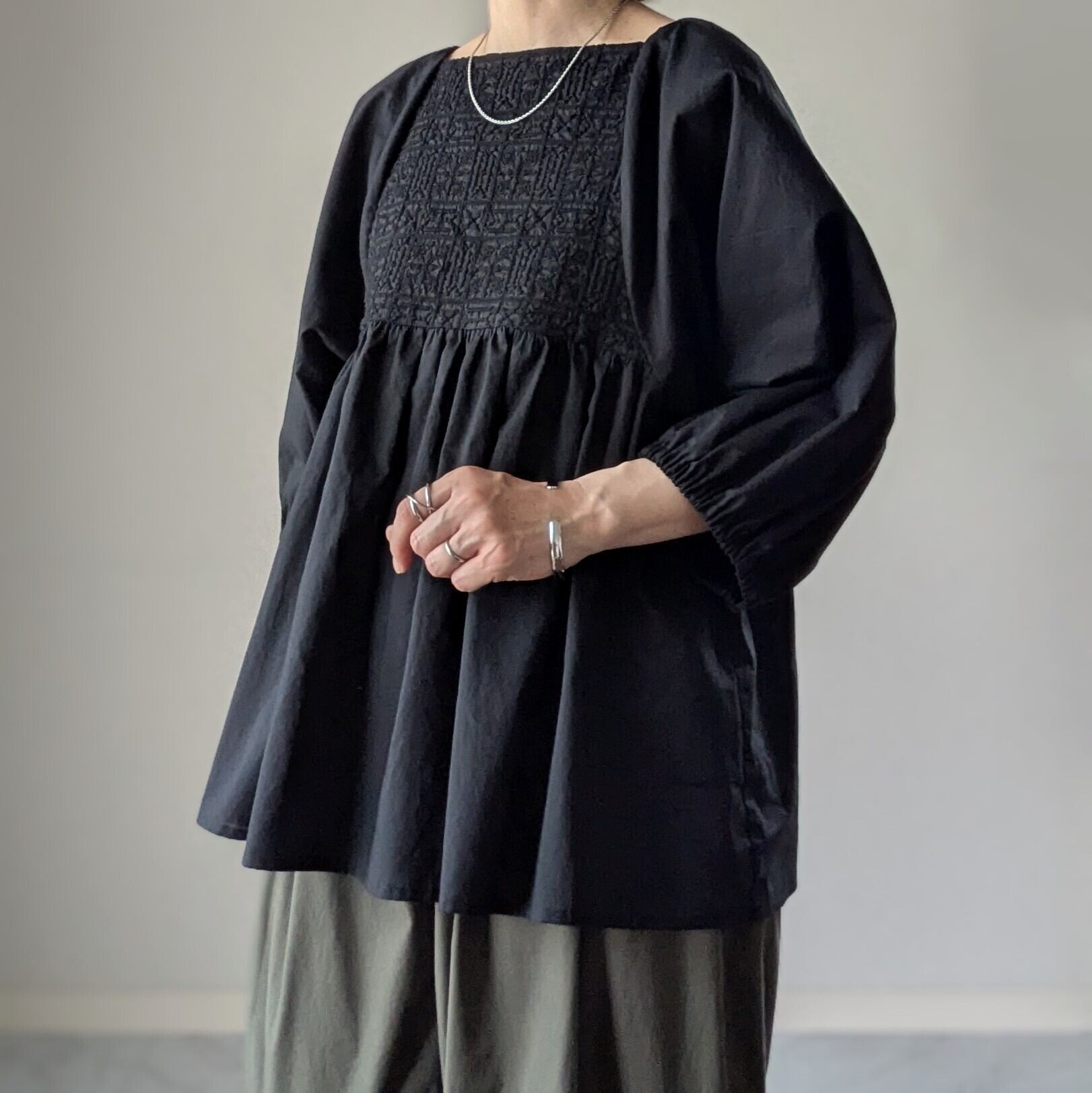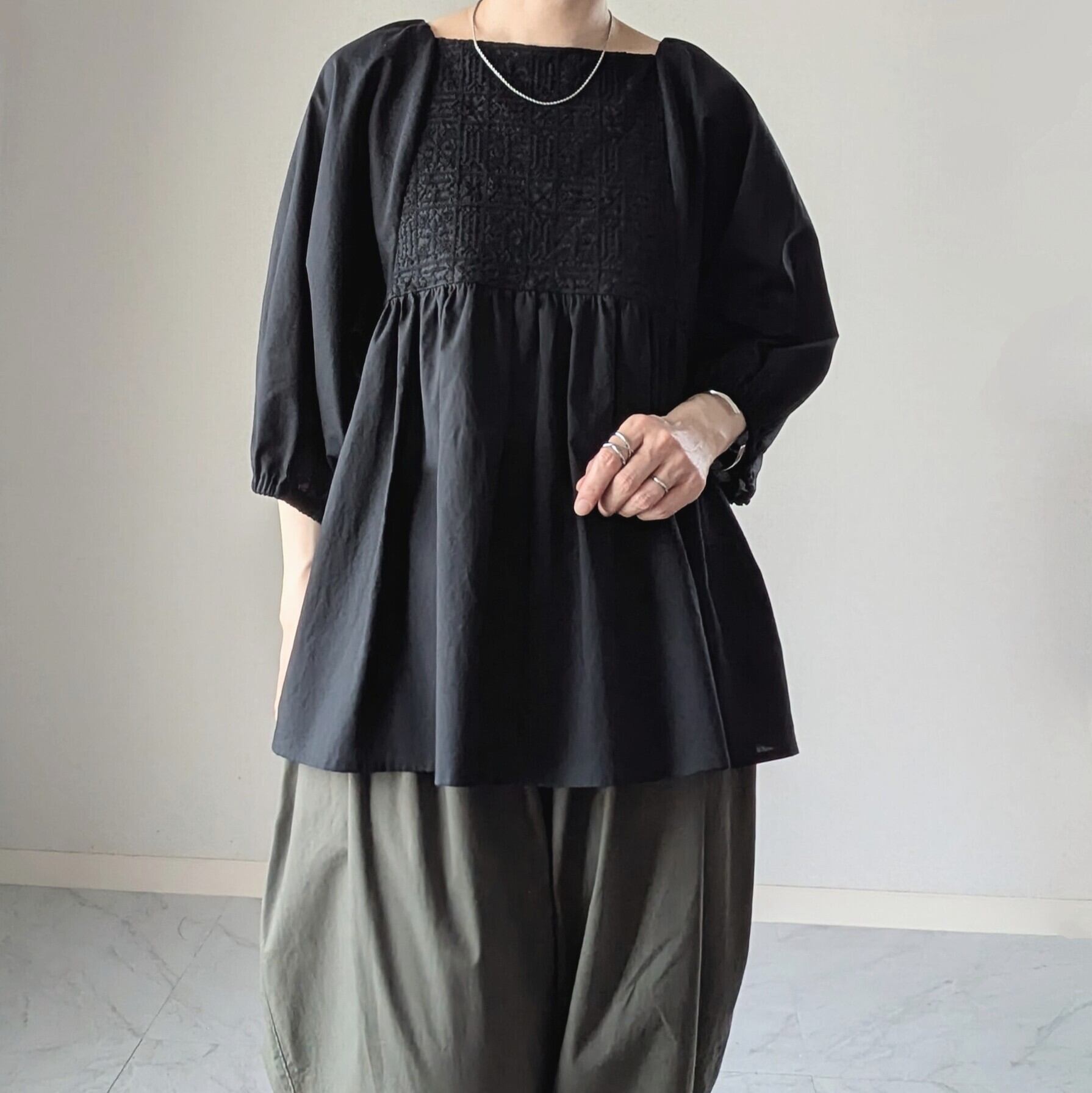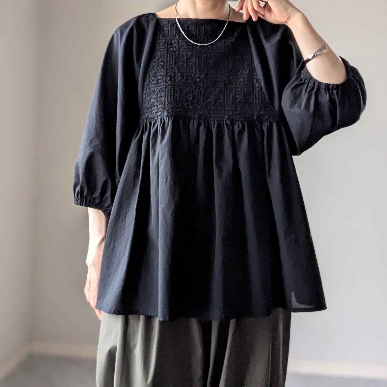 前後ヨークに美しい刺繍生地を贅沢に使用し、