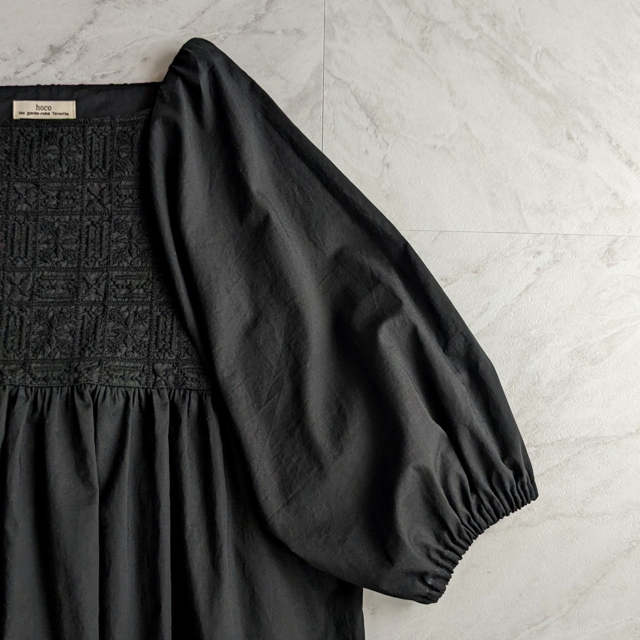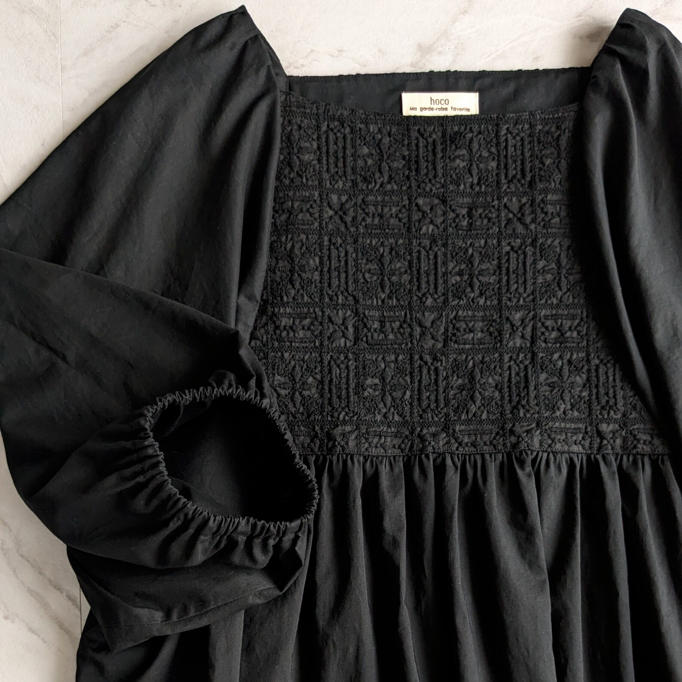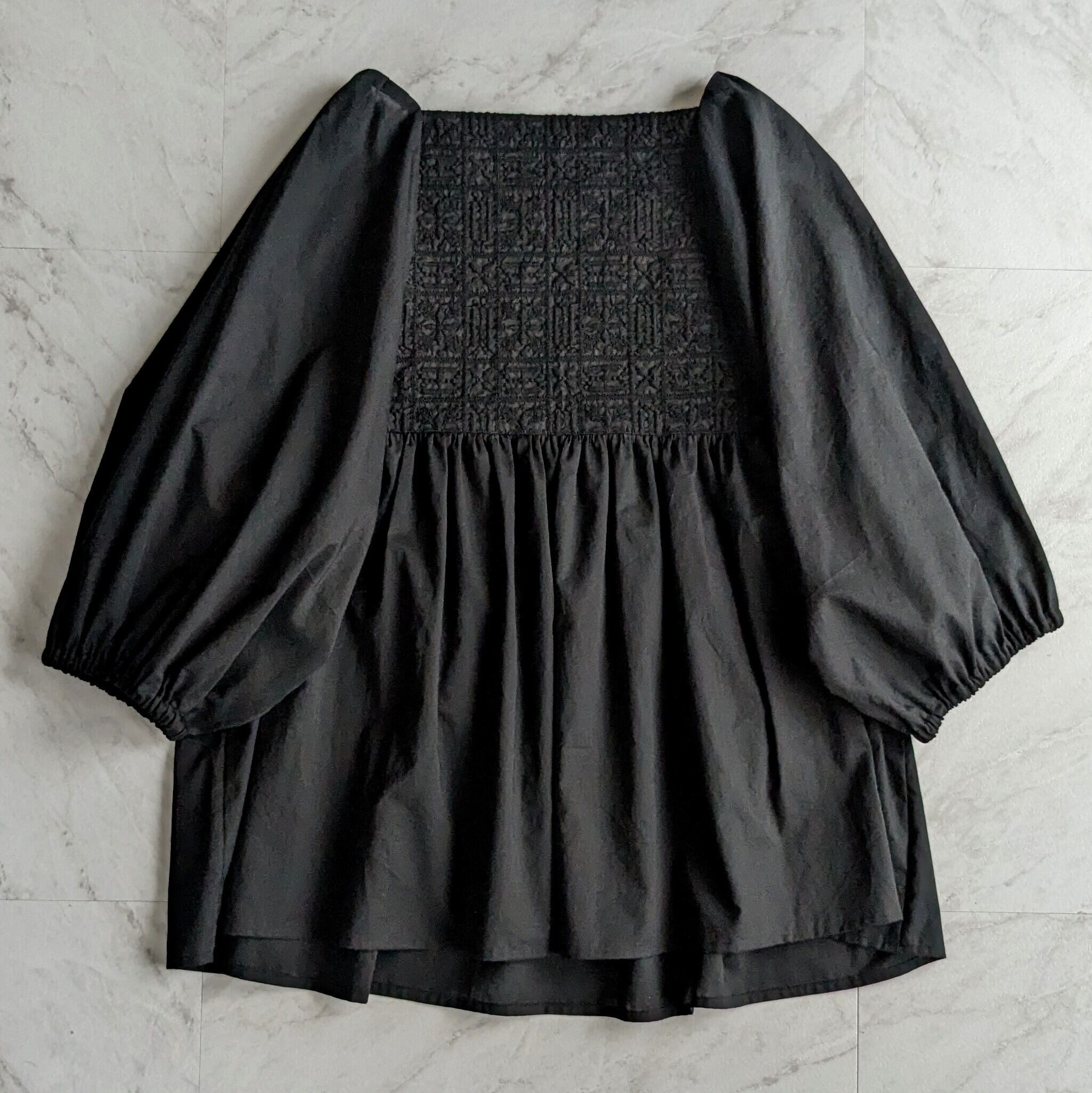繊細な刺繍生地を贅沢にあしらったヨーク部分は、